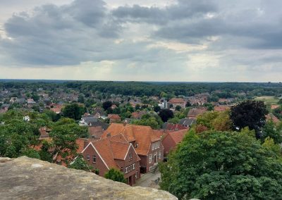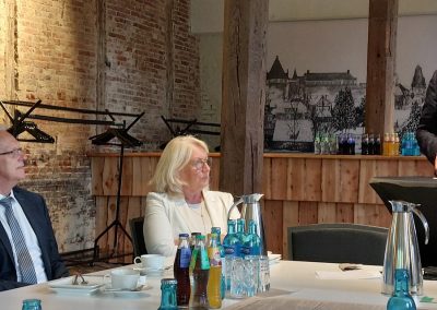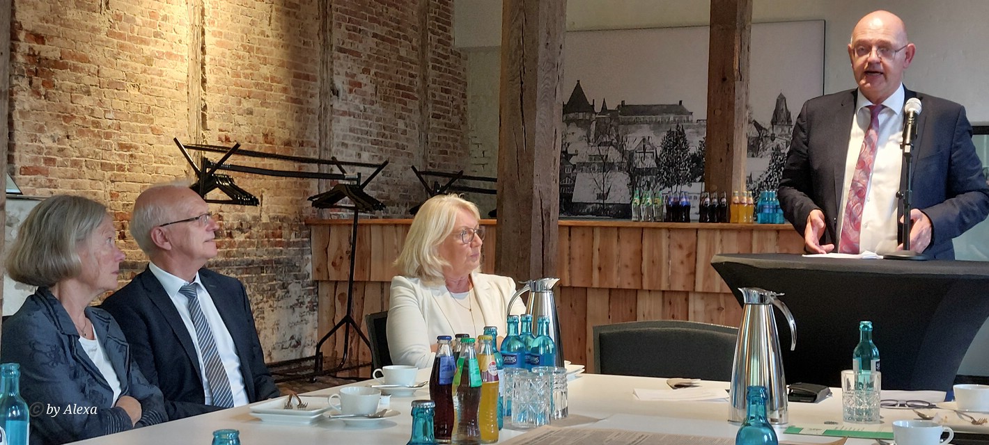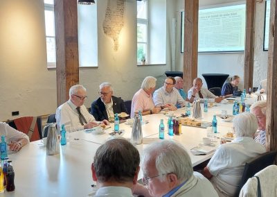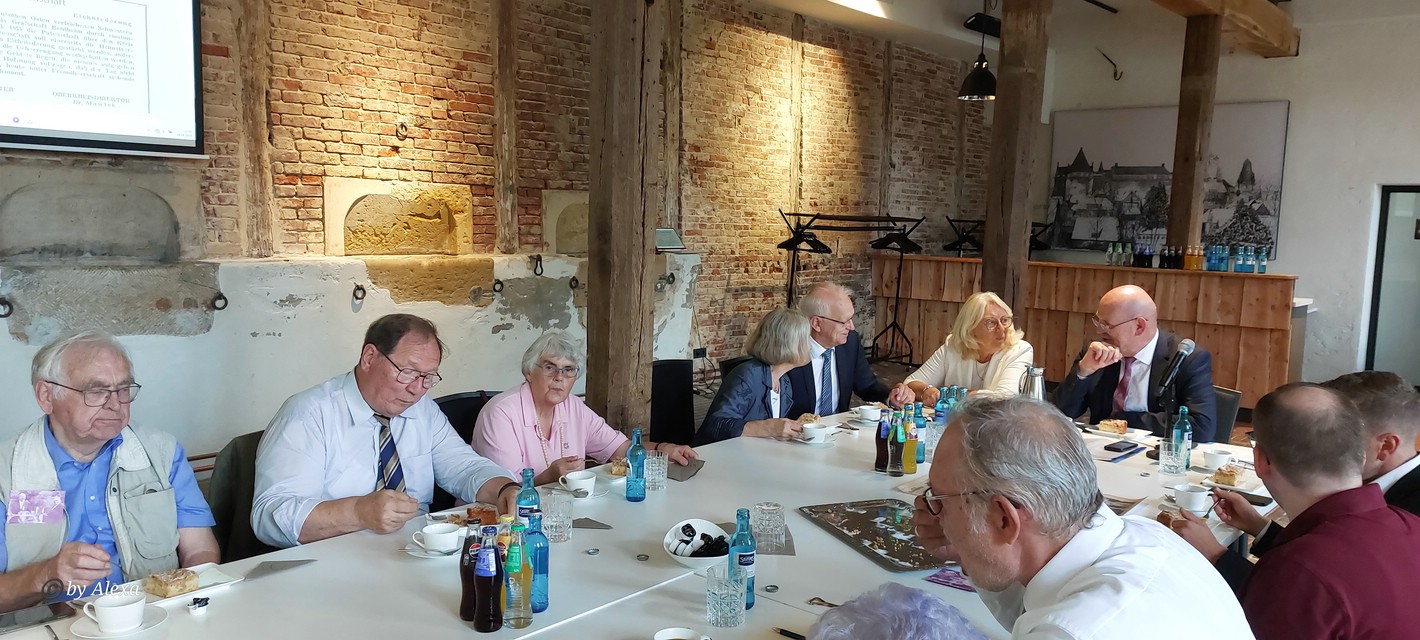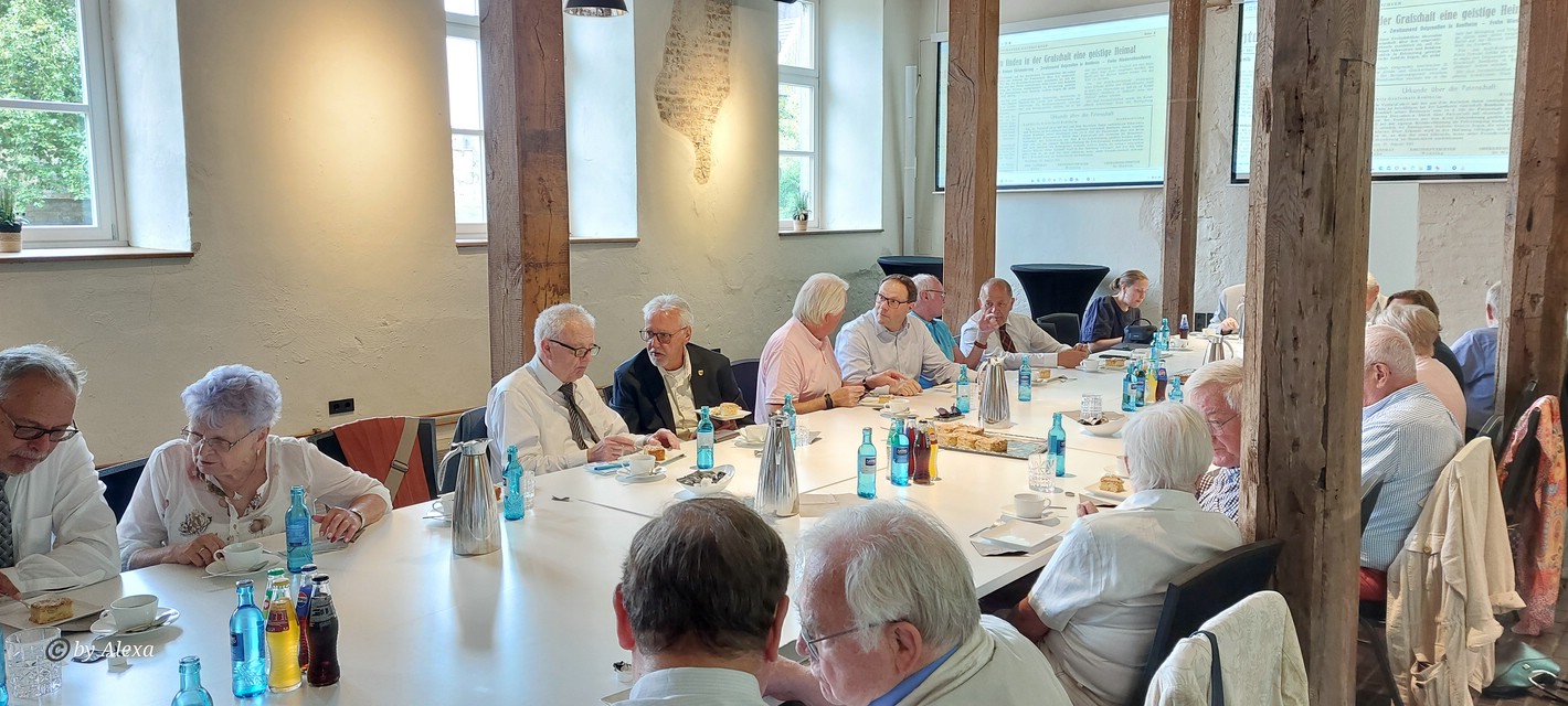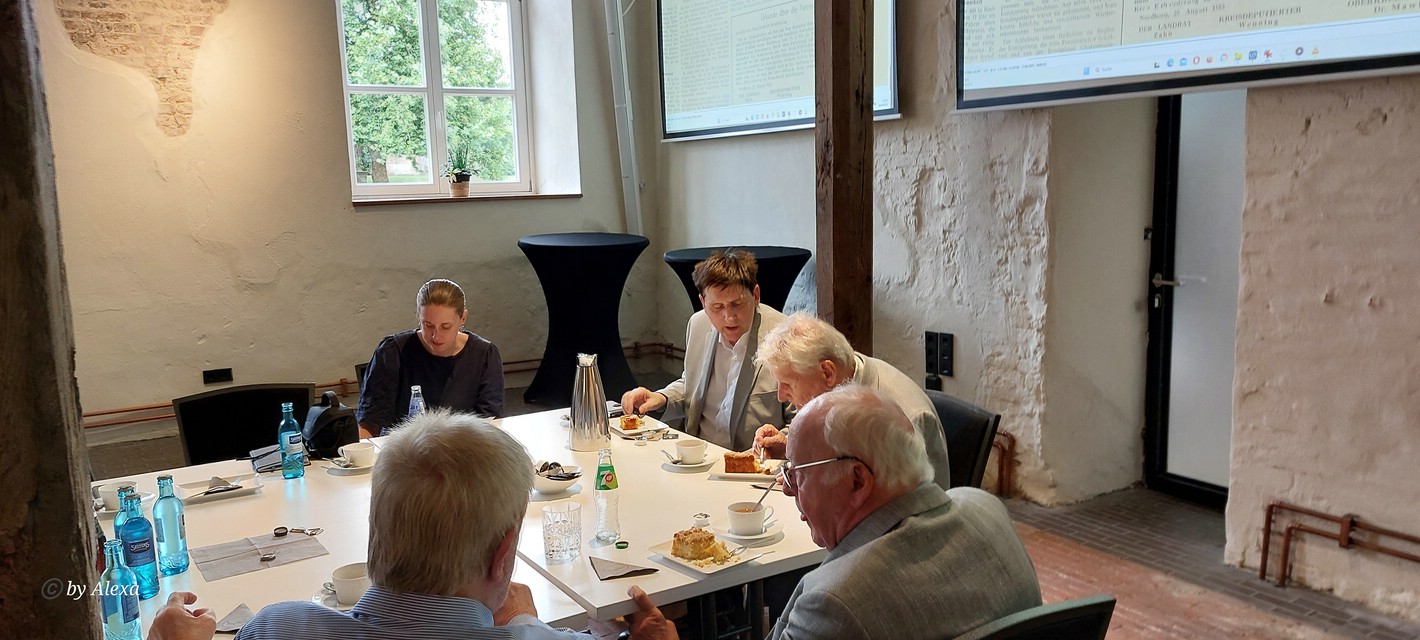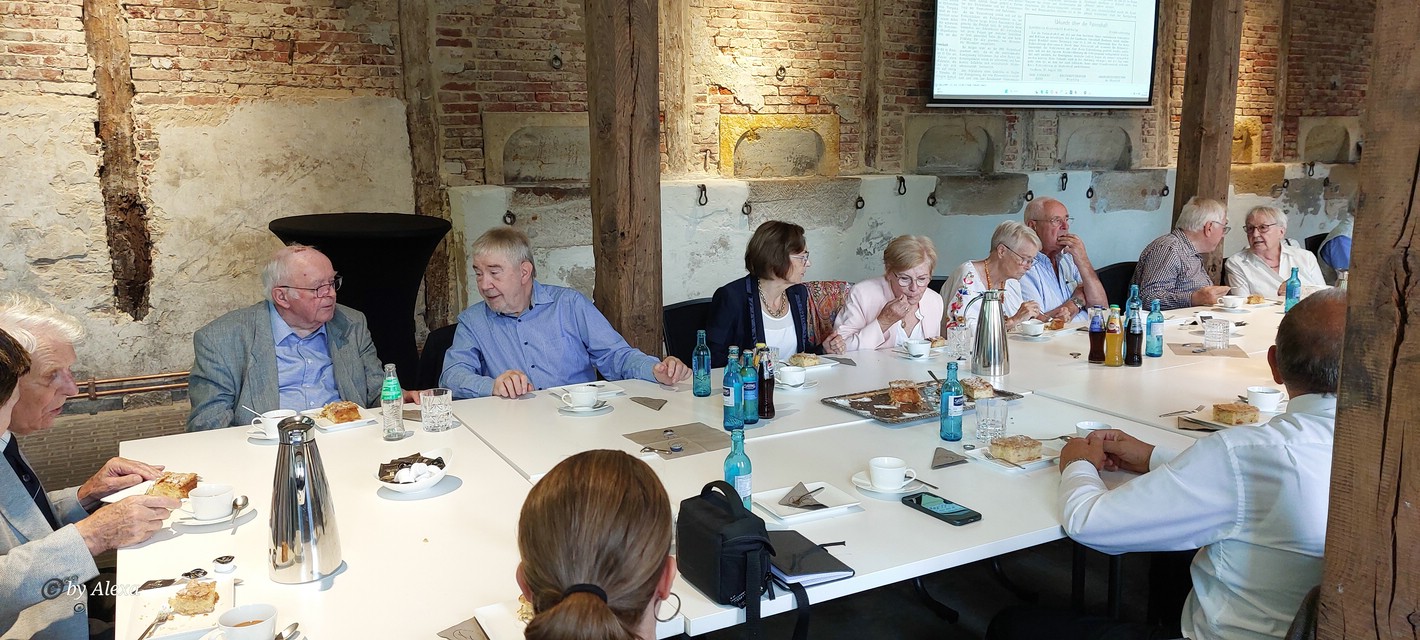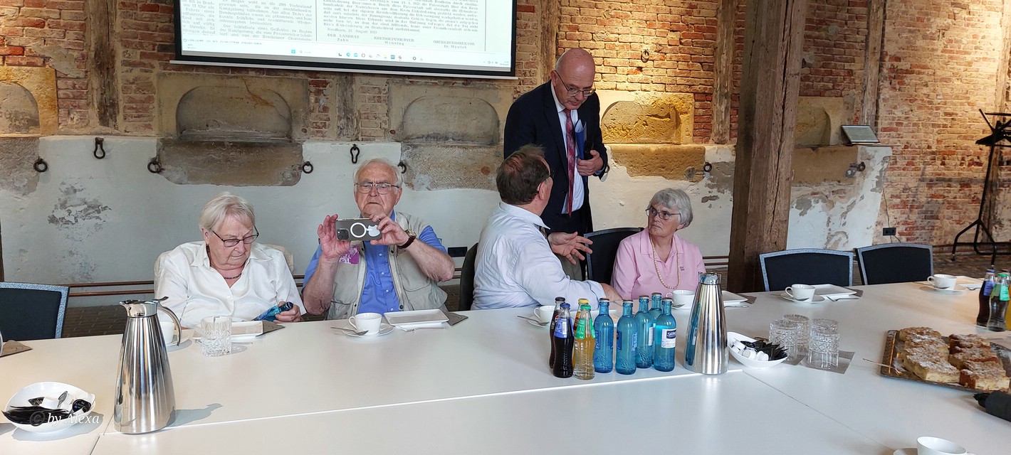 Die Teilnehmenden fanden sich dann am 28. August 2025 auf der Burg in Bad Bentheim ein. Zunächst war in den Marstall eingeladen worden. Bei Kaffee und Kuchen würdigten Herr Fietzek und der Kreisvertreter, James-Herbert Lundszien die Patenschaft.