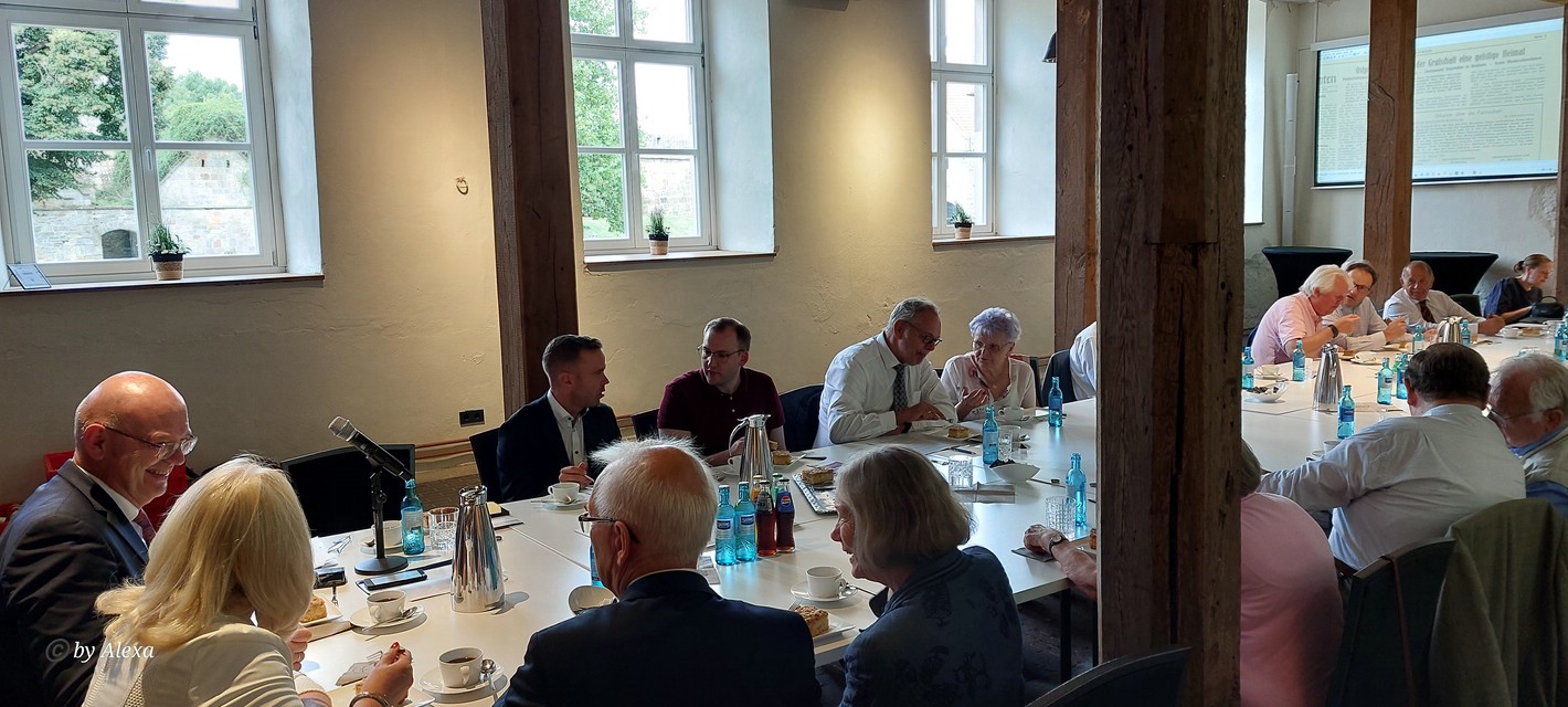 An die Reden schloss sich zunächst noch eine Zeit des gemeinsamen „Plachanderns“ an. Ab 16 Uhr wurden dann die Teilnehmenden durch die Burganlage und auch durch Räumlichkeiten geführt. Die Führungen waren mit interessanten geschichtlichen Hintergründen und auch der einen oder anderen Anekdote gewürzt.